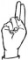 На ћирилици написано МИЛУТИН ШЕВО састоји се из 11 слова [?]. Исписано ћириличном једноручном азбуком за глувонеме: